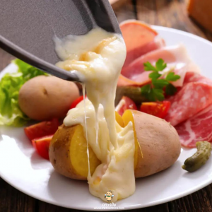 เนยแข็งก้อนโต ตั้งอยู่ข้างกองไฟให้เนยละลายเยิ้ม แล้วปาดออกมากินกับขนมปัง มันฝรั่งต้ม ผักดอง แฮม ไส้กรอก ฯลฯ เป็นอาหารชาวภูเขาที่มาขึ้นโต๊ะแล้วในปัจจุบัน
