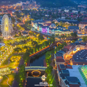 หลังจากเที่ยวเล่นกับเครื่อง VR กันไปแล้ว มาสนุกไปกับมุมถ่ายรูปสวย ๆ กันต่อในโซนเดียวกัน (Attraction Town) สีสันของร่มที่ใช้ประดับตกแต่งในยามกลางวันก็ดูน่ารัก สดใสมาก แต่พอตกเย็น แสงจากไฟประดับจะส่องสีร่มราวกับร่มเรืองแสงอยู่ รับรองว่าสวยจนหยุดกดชัตเตอร์ไม่ได้เลย