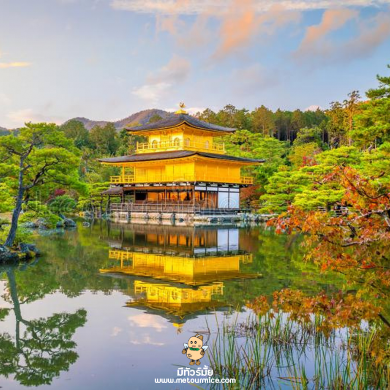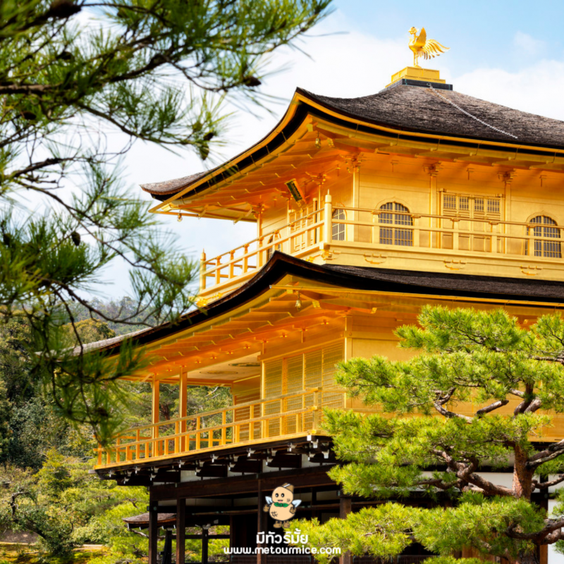 วัดคินคะคุจิ(Kinkakuji) ที่คนไทยทั่วไปรู้กันในชื่อว่าวัดทองนั่นเองค่ะ สาเหตุที่คนส่วนมากเรียกวัดนี้ว่าวัดทองนั่นก็เพราะว่าอาคารหลักของวัดนี้มีสีทองเหลืองอร่ามตั้งโดเด่นเป็นสง่าอยู่ท่ามกลางน้ำ เวลามองภาพสะท้อนก็กลายเป็นภาพที่งดงามไม่แพ้กัน เรียกได้ว่าดังขนาดกลายเป็นอีกหนึ่งสัญลักษณ์หนึ่งของสถานที่ท่องเที่ยวในเมืองเกียวโตเลยล่ะค่ะ จริงๆแล้วมีอีกชื่อนึงที่เป็นที่รู้จักของคนท้องถิ่นนั่นก็คือ “วัดโระคุงอนจิ(Rokuon-ji Temple)” ที่แปลว่าวัดสวนกวาง และด้วยสถาปัตยกรรมที่งดงามล้ำค่านี่เองจึงทำให้ได้รับการขึ้นทะเบียนจากยูเนสโกให้เป็นมรกดโลกในปี ค.ศ. 1994