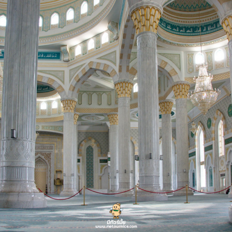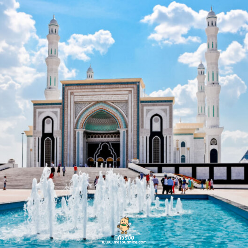 มัสยิดสุลตานฮัซเรต (Hazrat Sultan Mosque) มัสยิดสุลตานฮัซเรตเป็นมัสยิดที่ใหญ่ที่สุดในคาซัคสถานและใหญ่เป็นอันดับ 2 ของเอเชียกลาง ด้วยความสูงของยอดโดมถึง 51 เมตร เส้นผ่าศูนย์กลาง 28.1 เมตร อีกทั้งมีโดมขนาดเล็ก 8 โดมล้อมรอบ ตกแต่งด้วยหินอ่อนและประดับลวดลายตามจุดต่างๆ แบบฉบับคาซัคสถาน ภายในมีห้องประกอบพิธีทางศาสนาหลายห้องถือเป็นศูนย์กลางทางศาสนาอิสลามที่สำคัญอีกแห่งหนึ่งของโลกเลยก็ว่าได้