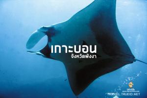 เกาะบอนเป็นจุดดำน้ำที่น่าสนใจอีกหนึ่งจุด จะอยู่บริเวณกองหินใต้ทางด้านปลายแหลมทิศตะวันตก บริเวณนี้มักพบฉลามครีบขาว (White tip reef shark) และฉลามเสือดาว (Leopard shark) ฉลามวาฬ โดยเฉพาะกระเบนราหู ซึ่งนักท่องเที่ยวสามารถพบได้ง่ายกว่าแหล่งท่องเที่ยวแหล่งอื่น
