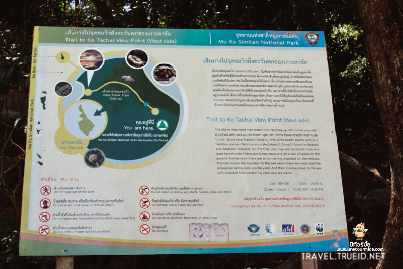 เส้นทางศึกษาธรรมชาติเกาะตาชัย เป็นเส้นทางสั้นๆ ใช้เวลาเดินประมาณ 15 นาที แต่ถ้าจะตั้งใจหาปูด้วยคงไช้สักครึ่งชั่วโมงค่ะ ใครที่พบเจอก็ขอให้ดูอย่างเดียวนะ อย่าจับออกมาถ่ายรูปเล่นให้น้องเจ็บตัวฟรี พักหลังๆ พอนักท่องเที่ยวไปรบกวนน้องปูบ่อยเข้า ก็ส่งผลให้จำนวนปูลดน้อยลงมากอย่างน่าใจหายเหมือนกัน ไกด์นำเที่ยวยังบอกว่าเมื่อก่อนเคยเจอเยอะกว่านี้มาก แต่อย่างครั้งนี้เจอแค่ 2 ตัวเท่านั้นเองค่ะ