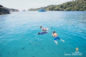 บอกเลยว่า น้ำใสไหลเย็นเห็นตัวปลามันเป็นแบบนี้นี่เอง ณ จุดๆ นี้ใครว่ายน้ำเก่ง ดำน้ำอึด และมีกล้องถ่ายภาพใต้น้ำจะมีดีไปกว่าครึ่ง เราสามารถดำลงไปถ่ายปลาน้อยนีโมที่แอบอยู่ตามดงดอกไม้ทะเลได้แบบชัดๆ ได้เลยส่วนใครว่ายไม่เก่งก็ดำดูปะการัง เล่นกับปลาเสือไปก่อนก็ได้นะ