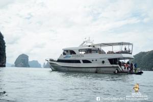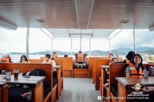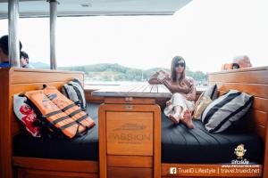 หลังจากพายแคนูกันจนเหนื่อย (เราพายแค่ขากลับก็ไม่ไหวแล้ว ที่เหลือลุงพายมาส่งเรื่อทั้งหมด ฮ่า) เรากลับขึ้นเรือมาพร้อมความหิว ก่อนไปเกาะต่อไป ก็อร่อยกับอาหารกลางวันบนเรือยาวๆ ชิลๆ ไปได้เลยค่ะ ความดีของการนั่งเรือยอร์ชก็คือ เรือลำขนาดใหญ่ จึงทำให้คนที่เมาเรือง่ายๆ อย่างเรา ไม่มีอาการเมาเรือสักนิด แถมอร่อยกับของกินได้ตลอดทางอีกด้วย