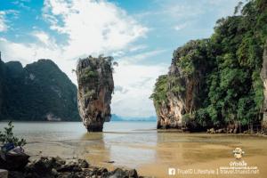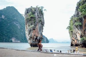 ไม่นาน เราก็มาถึงที่ เกาะ James Bond Island หรือที่เรียกว่า เขาตะปู และ เขาพิงกัน เรานั่งเรือหางยาวเข้าไปที่เกาะ