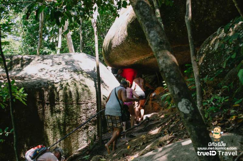 ขึ้นมาบนเกาะแล้วใครอยากจะเดินขึ้นไปยัง จุดชมวิว ก็ให้เตรียมตัวให้พร้อม ดื่มน้ำให้เรียบร้อย แม้ระยะทางที่เดินขึ้นไปจะไม่ไกล แต่ก็สมบุกสมบันใช้ได้เลยทีเดียวค่ะ เพราะต้องปีนหินก้อนโตๆ บวกกับเดินในทางที่ลาดชันพอสมควรขึ้นไปเรื่อยๆ