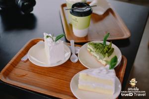 นอกจากไร่ชา ท่ามกลางภูเขา และท้องฟ้าสีครามแล้ว ที่นี่ยังมีคาเฟ่เล็กๆ ให้นักท่องเที่ยวได้อร่อยกับเค้ก พร้อมนั่งจิบชาชมวิวในบรรยากาศดีๆ อีกด้วยค่ะ แน่นอนว่ามาทั้งที เราก็ไม่พลาดที่จะไปลองชิมสักหน่อย