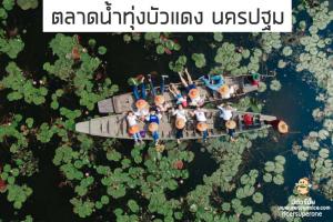 ตลาดน้ำทุ่งบัวแดง ณ บางเลน ตลาดน้ำนครปฐม อีกแห่งที่น่าไปเที่ยว ขับรถชิลแป๊ปเดียวถึง ที่นี่ตั้งอยู่กลางทุ่งนา และ ทุ่งบัวแดง ให้นักท่องเที่ยวได้สัมผัสถึงธรรมชาติความสวยงามของบัวแดงกันค่ะ พายเรือชิลๆ ถ่ายรูปชิคๆ ท่ามกลางดอกบัวแดง ที่สำคัญบานกันตลอดทั้งปี ไม่ต้องรอเที่ยวตามฤดูกาลอีกด้วย นอกจากนี้ ภายในตลาดยังมีร้านค้า และร้านอาหารอร่อย มากมาย เป็นอีกหนึ่งที่ที่ต้องมาเช็คอินเลย