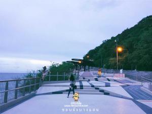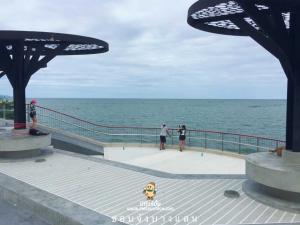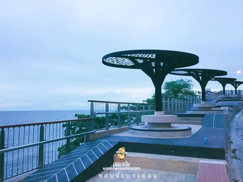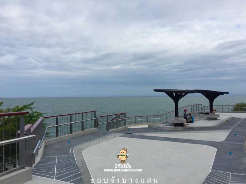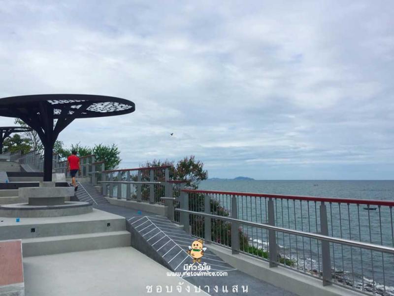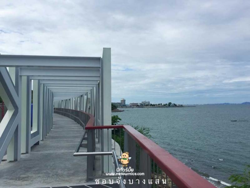 เมื่อเดินขึ้นไป พื้นที่จะแคบลงเรื่อยๆ จนถึงจุดสูงสุด เป็นช่วงเดินลอดอุโมงค์ตัวอักษร “Bangsaen Kaosammuk” ตรงปลายอุโมงค์เชื่อมด้วยลานกว้าง มีที่ให้นั่งพัก ยืดเส้นยืดสาย ก่อนเริ่มเดินลงเขาผ่านทางที่แคบคล้ายกับช่วงขาขึ้น เดินลงเขามาสักพัก จะเจอลานกว้างอีกหนึ่งจุด มีรั้วรอบปลอดภัย สำหรับยืนรับลมชมวิวทะเล ยิ่งถ้ามาในช่วงเย็น ตอนพระอาทิตย์ใกล้ตกดิน ยิ่งสวยงามจับใจ