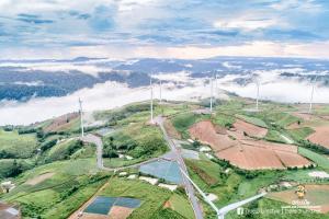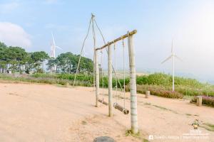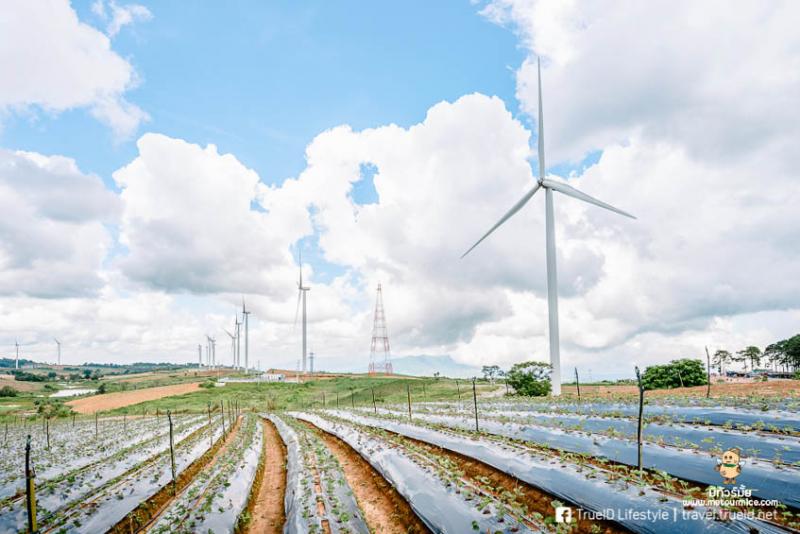 การเดินทางมาก็ไม่ยาก ถนนดีตลอดสาย พอมาถึงแล้วจะมีลานจอดรถอยู่ด้านหน้า (เอารถส่วนตัวเข้าไปไม่ได้) แต่จะมีบริการรถรางนำเที่ยว พาชทเป็นรอบๆ ประมาณ 30 นาทีต่อรอบ ค่าบริการคนละ 40 บาท โดยจะพาแวะที่จุดถ่ายรูปให้ หลักๆ มี 2 จุด คือบริเวณจุดที่สูงที่สุด ให้เราได้เก็บภาพวิวภูเขา และทุ่งกังหันลม อีกจุดหนึ่งก็คือตรงป้ายทุ่งกังหันลม แนะนำว่าใครอยากได้ภาพสวยๆ ไม่ย้อนแสง ควรมาตั้งแต่ช่วงเช้า