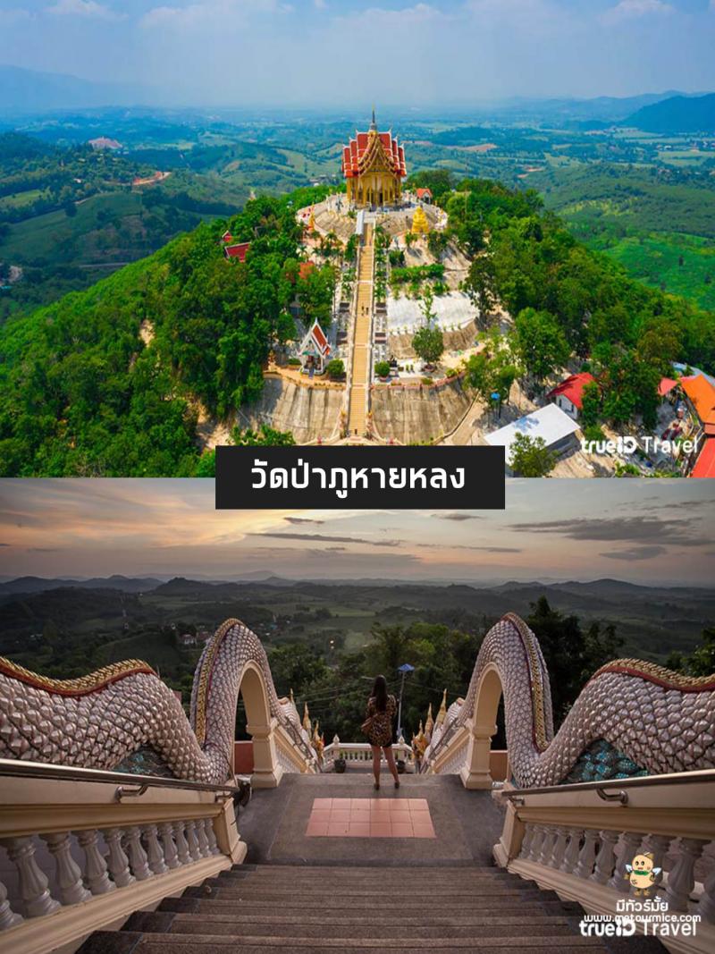 วัดป่าภูหายหลง วัดสวย บนภูเขา ที่ถูกล้อมไปด้วยหมอกและต้นไม้อยู่ใจกลางของธรรมชาติ ด้านบนสุดจะเป็นที่ตั้งของอุโบสถที่มีสถาปัตยกรรมงดงาม อีกทั้งยังได้ชื่อว่า เป็นจุดชมวิวสวยๆ ได้แบบรอบ 360 องศาเลยทีเดียวค่ะ ในยามเช้าวัดแห่งนี้จะถูกสายหมอกล้อมเอาไว้สวยงามมากๆ