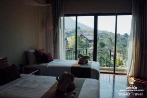 ห้องพักที่นี่สะอาด แถมมีขนาดใหญ่ กว้างขวาง ใกล้ชิดกับธรรมชาติที่แท้ทรู ไฮไลต์ในห้องของเรา ก็คือระเบียงด้านนอกนั่นเอง เพราะทุกคนจะได้เห็นทิวเขาอันกว้างใหญ่ เห็นแล้วทำให้รู้สึกโล่งสบาย ไม่อยากเดินทางกลับกรุงเทพฯ ไปเจอกับชีวิตในเมืองเอาซะเลย