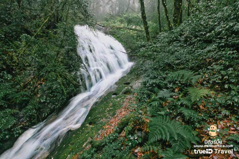 เดินเข้ามาด้านในป่า บอกเลยว่า ชุ่มชื่นมากค่ะ สีเขียวขจีไปรอบบริเวณ แม้อากาศจะหนาว และชื้นมากๆ ก็รู็สึกดีสุดๆ อีกทั้งเรายังเดินผ่าน น้ำตกลานเสด็จ ซึ่งตั้งอยู่ไม่ไกลจากทางที่เราเริ่มเดินเข้ามาค่ะ ตรงนี้เล่นน้ำไม่ได้นะจ๊ะ ได้แต่ถ่ายรูปสวยๆ เขียวขจีแบบนี้เก็บไว้แทน