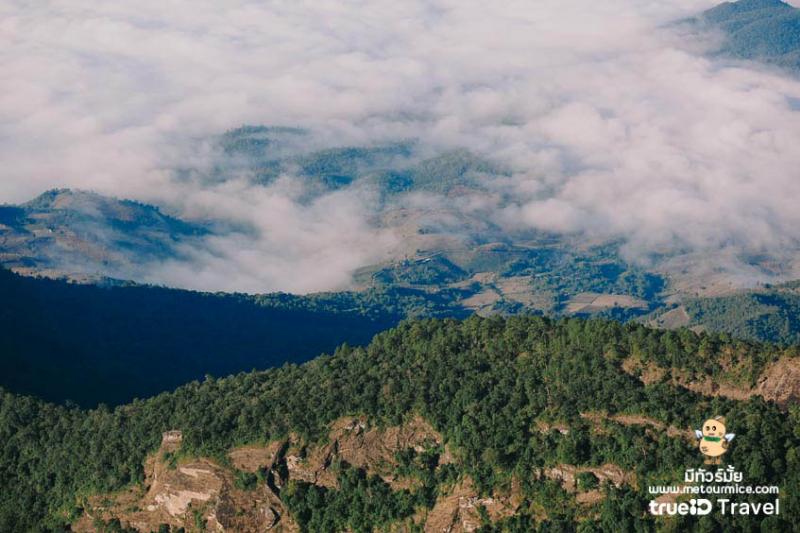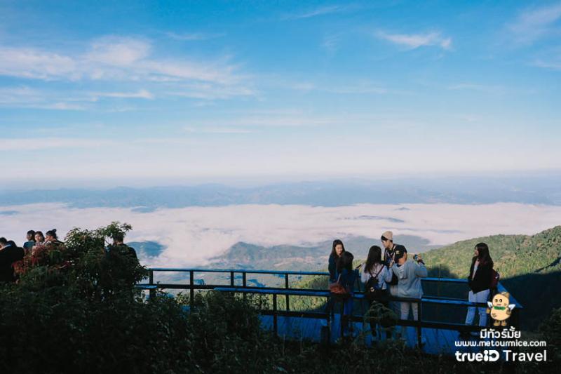 เดินเพลินๆ มาเรื่อยๆ เราก็มาถึงจุดที่ 9 ซึ่งเป็นแลนด์มาร์คที่ต้องเช็คอินของกิ่วแม่ปานกันแล้ว ตรงนี้จะเป็นจุดชมพระอาทิตย์ขึ้น และ ทะเลหมอก ตรงนี้เป็นจุดถ่ายรูปยอดนิยม ซึ่งจะเห็นภูเขาสูงซึ่งเป็นปลายๆ ของ เทือกเขาหิมาลัย ปกคุลมไปด้วยเมฆหมอกที่สวยงามราวกับภาพวาดทีเดียว เราเลยใช้เวลาตรงนี้ค่อนข้างนานหน่อย ต่อคิวกันถ่ายรูปค่ะ มีนักท่องเที่ยวมาถ่ายภาพพรีเวดดิ้งด้วยนะ ได้ภาพสวยอลังการแน่นอนจ้า