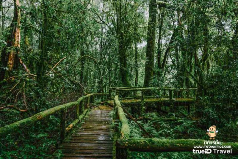 ทำให้บริเวณต้นไม้ในป่าดิบเขานี้ จะมีมอสและเฟินขึ้นเต็มต้น จนให้ความรู้สึกเหมือนป่าในยุคดึกดำบรรพ์ เลยทีเดียว เส้นทางเดินศึกษาธรรมชาติ อ่างกา นี้ จะเป็นเส้นทางระยะ 300 เมตร ที่นักท่องเที่ยวสามารถเดินชมได้ โดยจะมีสะพานไม้ไว้เป็นทางเดิน เพื่อป้องกันไม่ให้เหยียบหรือทำลายธรรมชาติ โดยเส้นทางนี้จะวนกลับมาที่จุดเริ่มต้นอีกครั้ง ไม่ต้องกลัวว่าจะหลงเลยค่ะ และที่สำคัญยังมีป้ายให้ความรู้เรื่องธรรมชาติตลอดเส้นทางอีกด้วย