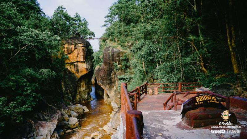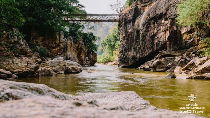 โดยด้านบนของหน้าผา จะมีสะพานไว้เชื่อมช่องเขาขาด ให้นักท่องเที่ยวได้ชมความสวยงามของออบหลวงนั่นเองค่ะ และบริเวณนี้จะมีเสียงน้ำที่กระทบกับหน้าผาดังสนั่นไปทั่วอีกด้วยค่ะ และเมื่อข้ามสะพานไปนั้น ก็จะเป็นจุดที่มีการขุดค้นพบแหล่งโบราณคดียุคก่อนประวัติศาสตร์อีกด้วยค่ะ มีทั้ง หลุมฝังศพของมนุษย์โบราณ โครงกระดูกของมนุษย์ในสมัยยุคสำริด อายุระหว่าง 2,500-3,500 ปี รวมไปถึง ภาพเขียนสีขาว ที่บริเวณเพิงผาช้าง ด้วย