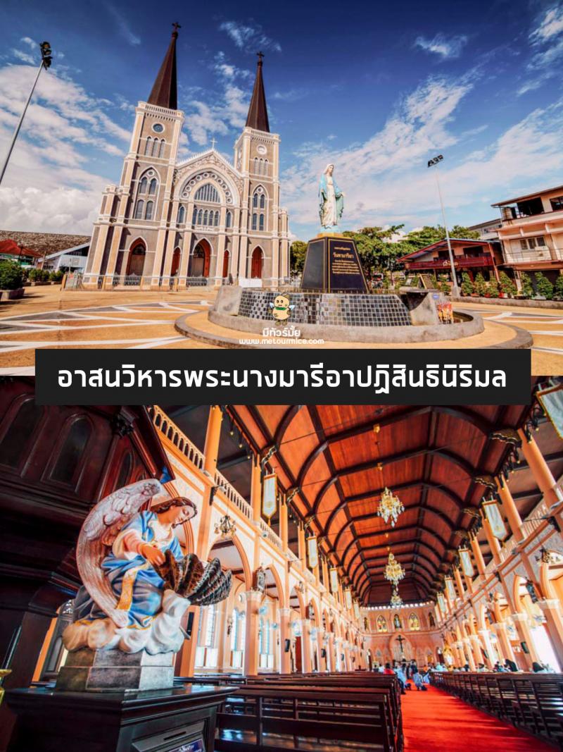 อาสนวิหารพระนางมารีอาปฏิสินธินิริมล โบสถ์คริสต์ จันทบุรี ที่ใหญ่ที่สุดในประเทศไทย มีอายุกว่า 100 ปีเลยทีเดียวค่ะ ที่นี่มีลักษณะเป็นสถาปัตยกรรมตะวันตกแบบโกธิก ประดับกระจกสีสแตนกลาสรูปนักบุญ รอบโบสถ์ ภายในมีรูปปั้นพระแม่มารีอาประดับพลอยที่เกิดจากการบริจาคด้วยความศรัทธาของประชาชน เป็นโบสถ์สวยที่ตั้งอยู่ใกล้กับชุมชนจันทบูร และเป็นสถานที่ที่นักท่องเที่ยวมักมาเยี่ยมชม และถ่ายรูปสวยๆ กลับไปเป็นที่ระลึกอีกด้วย