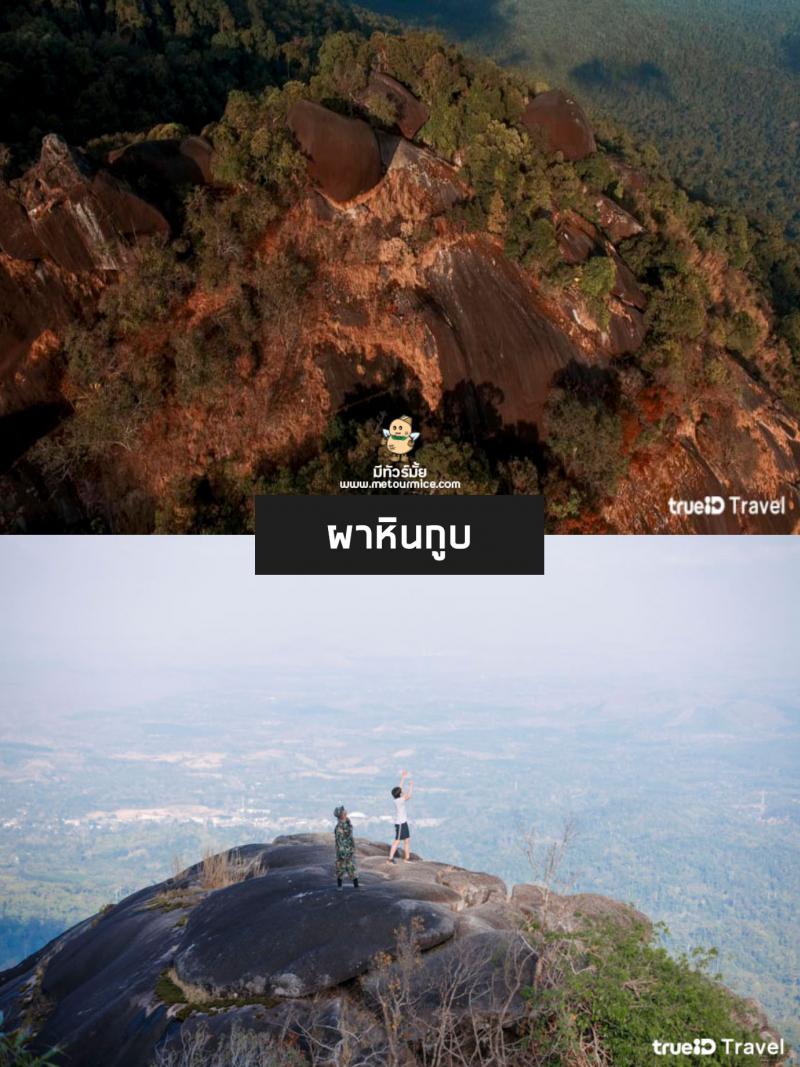 เมื่อมาถึงด้านบน เราจะเจอกับวิวอลังการสุดๆ เหมือนเอามือเอื้อมไปแตะขอบฟ้าได้ ตรงจุดชมวิวผาหินกูบนี้ จะมีลักษณะเป็นก้อนหินขนาดใหญ่ คล้ายกับกูบช้าง คำว่า “กูบ” หมายถึง ที่นั่งบนหลังช้าง เมื่อขึ้นไปนั่งอยู่บนยอดเขา เหมือนเราได้ไปนั่งอยู่บนหลังช้างนั่นเอง