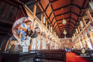 การตกแต่งของตัวโบสถ์นั้น จะใช้ไม้ฉลุลายประดับกระจกสีเป็นรูปนักบุญต่างๆ ในศาสนาคริสต์ และมีรูปปั้นพระแม่มารียืนอยู่หน้าวิหารทรงโกธิคสวยงามมากๆ ส่วนด้านในนั้นจะมีความสงบและงดงาม เพราะตกแต่งด้วยศิลปะแบบยุโรป เป็นอาคารที่แม้ว่าจะผ่านกาลเวลามาอย่างยาวนานแต่ก็ยังคงสวยงามอยู่มากๆ