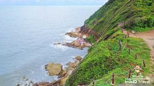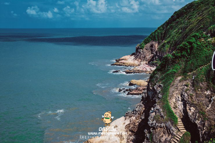 เมื่อเงยหน้ามองดูภาพของวิวที่หน้าผา จะเห็นภาพของวิวทะเลกว้างไกลสุดลูกหูลูกตา ในเวลาเย็นตอนพระอาทิตย์ตก จะรู้สึกเหมือนมีอะไรบางอย่างมาดูดเราไว้ ทำให้จ้องภาพตรงหน้าแบบไม่กระพริบตาเลยค่ะ ความสวยตรงหน้าทำให้สตั้นไปสักพักเลยค่ะ พอรู้สึกตัวได้ ก็เลยรีบเอากล้องมากดชัตเตอร์รัวๆ ที่นี่เป็นอีกอันซีนที่นักท่องเที่ยวยังมาไม่มากนัก และธรรมชาติยังคงสมบูรณ์อยู่มากค่ะ ที่สำคัญเดินทางง่ายไม่ไกลจากกรุงเทพด้วย ใครอยากหาที่ เที่ยวใกล้กรุงเทพ แนะนำให้มาเที่ยวที่นี่กันเลยค่ะ