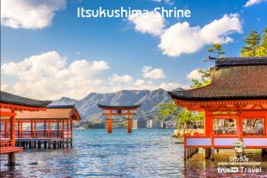 เป็นภาพที่สะกดทุกสายตาได้เสมอ สำหรับเสาโทริสีแดงขนาดใหญ่กลางมหาสมุทร สามารถเดินไปชมใกล้ๆ ได้ในช่วงน้ำลง ศาลเจ้าอิสึกุชิมะนั้นตั้งอยู่บนเกาะเล็กๆ ชื่อว่ามิยาจิมะ นั่งเรือเฟอร์รี่จากฮิโรชิม่าประมาณ 10 นาทีถึง ศาลเจ้าแห่งนี้เป็นสัญลักษณ์แห่งความศักดิ์สิทธิ์ของเกาะ ในอดีตชาวบ้านสามัญชนจะถูกห้ามไม่ให้ย่างเท้าขึ้นบนเกาะ และต้องเดินทางโดยเรือผ่านเสาประตูที่ลอยอยู่กลางทะเล