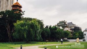 อีกส่วนหนึ่งที่เรารู้สึกชอบมากๆ คือ สวนหญ้าสีเขียวขจี ของล้ง 1919 ไฮไลท์เด็ด และจุดเด่นของโซนนี้ คือวิวหญ้าสีเขียว ที่มีวัดจีน เป็นฉากอยู๋ด้านหลัง บอกเลยว่า เหมือนกำลังเดินเล่นอยู่ต่างประเทศ เลยล่ะครับ