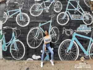 เรียกได้ว่าใครเป็นแฟนงานสตรีทอาร์ต มาเดินซอยเจริญกรุง 32 จะต้องฟินแน่นอน แต่ละภาพเอามาเป็นฉากหลังถ่ายชิคๆ บวกแอ็คชั่นนิดๆ ได้รูปงานดีๆโพสลง FB,IG ได้สบายๆ แต่ถ้าใครอยากเก็บภาพมุมกว้างของงานสตรีทอาร์ตในซอยนี้ เราขอแนะนำเลือกใช้โหมด Ultra Wide ของ Galaxy A50s ที่ต่อให้กว้างแค่ไหนก็สามารถเก็บทุกส่วนเข้ามาอยู่ในเฟรมเดียว ถ่ายจบในช็อตเดียวได้เลย เหมาะกับถนนแคบๆแบบนี้ที่เดินถอยหลังไปถ่ายไม่ได้