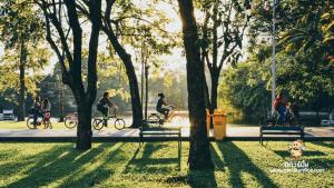 เมืองจราจรจำลอง อีกกิจกรรมของเด็กๆ ที่จะจำลองสิ่งก่อสร้างและสถานที่ท่องเที่ยวต่างๆ ในเมืองไทยมารวมกันไว้ ทั้ง สะพานพระราม 8 ภูเขาทอง อนุสาวรีย์ชัยสมรภูมิ เป็นต้น นอกจากนี้ยังที่ฝึกอบรมให้ความรู้เรื่องการขับขี่ยานยนต์และการจราจรแก่เด็กๆ และเยาวชนอีกด้วยค่ะ พ่อแม่ก็ปั่นจักรยาน หรืออ่านหนังสือใต้ต้นไม้กันไป ส่วนลูกๆ ก็ไปเล่นสนุกกันที่เมืองจำลอง ชิลสุดๆ ไปเลย