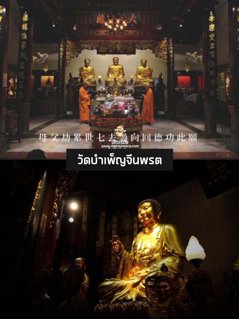 จากประตูทางเข้าถึงวิหารท้าวจุโลกบาล จะเห็นเทพเจ้า 4 องค์ในชุดนักรบจีน (ข้างละ 2 องค์) ชาวจีนเรียกว่า “ซี้ไต๋เทียงอ้วง” หมายถึงเทพเจ้าที่ปกปักษ์รักษาคุ้มครองทิศต่างๆ ทั้ง 4 ทิศ ถัดจากวิหารท้าวจตุโลกบาลคือพระอุโบสถ เป็นที่ประดิษฐานพระประธานของวัด คือพระศากยมุนีพุทธเจ้า พระอมิตาภพุทธเจ้า พระไภษัชยคุรุพุทธเจ้า ทั้งหมด 3 องค์ นอกจากนี้ยังมีเทพเจ้าอื่นรวมทั้งหมด 58 องค์