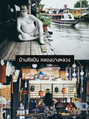 มาถึงที่บ้านศิลปิน อีกหนึ่งแหล่งรวมงานศิลป์ทรงคุณค่า เป็นอาร์ตแกลเลอรีอาคารไม้เก่าแก่ อายุเป็นร้อยปี ที่ตั้งอยู่ริมคลองบางหลวงค่ะ ที่นี่มีทั้งภาพวาดและภาพถ่ายให้ได้ชมกัน ลานกลางบ้านมีเจดีย์ย่อมุมไม้สิบสองสมัยอยุธยา ที่น่าจะเป็นเจดีย์ในวัดกำแพงที่อยู่ถัดไป การได้มาเดินชมภาพของที่นี่เหมือนได้มองย้อนไปเห็นถึงวิถีชีวิตริมคลองเมืองบางกอกเลยทีเดียว ที่สำคัญมีการแสดงหุ่นละครเล็กฟรีด้วยน้า