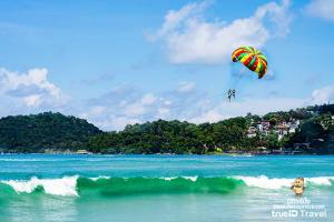 ชายหาดป่าตองนั้น เป็นชายหาดโค้งเหมือนรูปตัว U ยาวประมาณ 9 กิโลเมตร มีแนวภูเขาคั่นหัวและท้าย ทำให้ช่วยบังคลื่นลมได้เป็นอย่างดีเลยค่ะ น้ำทะเลใสสีเขียว เหมาะสำหรับเล่นน้ำทะเลเป็นอย่างมาก และยังมีกิจกรรมทางทะเล ไม่ว่าจะเป็น เจ็ตสกี พาราชู้ต สปีดโบ๊ท เรือใบ และอื่นๆ อีกเยอะแยะมากมาย ไว้สำหรับรองรับนักท่องเที่ยวค่ะ หรือถ้าใครจะเหมาเรือหางยาวไปเที่ยวหาดใกล้ๆ ก็ได้ด้วยนะคะ ไม่แปลกใจว่าทำไม หาดป่าตอง ถึงเป็นหาดที่มีนักท่องเที่ยวมาเยือนมากที่สุด