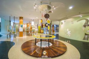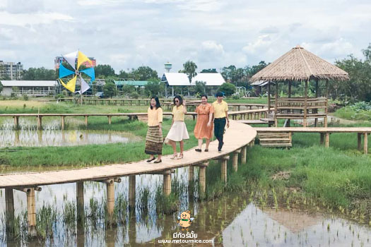 อีกทั้งยังมีนิทรรศการกลางแจ้ง หมู่เรือนไทย 4 ภาค เรือขุดคลอง สมัยรัชกาลที่ 5 พร้อมจุดชมวิว รวมไปถึงแปลงเกษตรการปลูกพืชแบบผสมผสาน และ ร้าน Wisdom Cafe คาเฟ่กลางทุ่งนา บรรยากาศดี ที่เราจะสัมผัสความสดชื่นบรรยากาศแปลงนา และสะพานไม้ไผ่ พร้อมจุดรูปสวยๆ อีกด้วยค่ะ