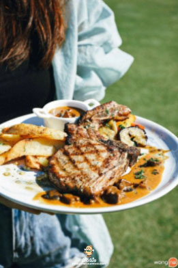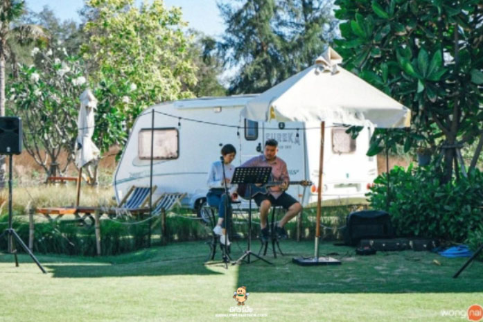 เมื่ออิ่มกับอาหารจานเด็ด ก็นั่งพักพุงและผ่อนคลายไปกับบรรยากาศยามบ่ายริมทะเล พร้อมกับฟังดนตรีสด เพราะ ๆ ที่มีให้ฟังกันทุกวันเสาร์-อาทิตย์ มองไปรอบ ๆ กับบรรยากาศสบาย ๆ พื้นหญ้าสีเขียวตัดกับสีฟ้าของน้ำทะเล ที่มองออกไปไกลสุดลูกหูลูกตา บรรจบกับเส้นขอบฟ้าอันไกลโพ้น นั่งกันจนลืมเวลาจนพระอาทิตย์ตก ท้องฟ้าเปลี่ยนสีจนเป็นภาพที่งดงาม ทำเอาไม่อยากจะลุกไปไหนเลยทีเดียว