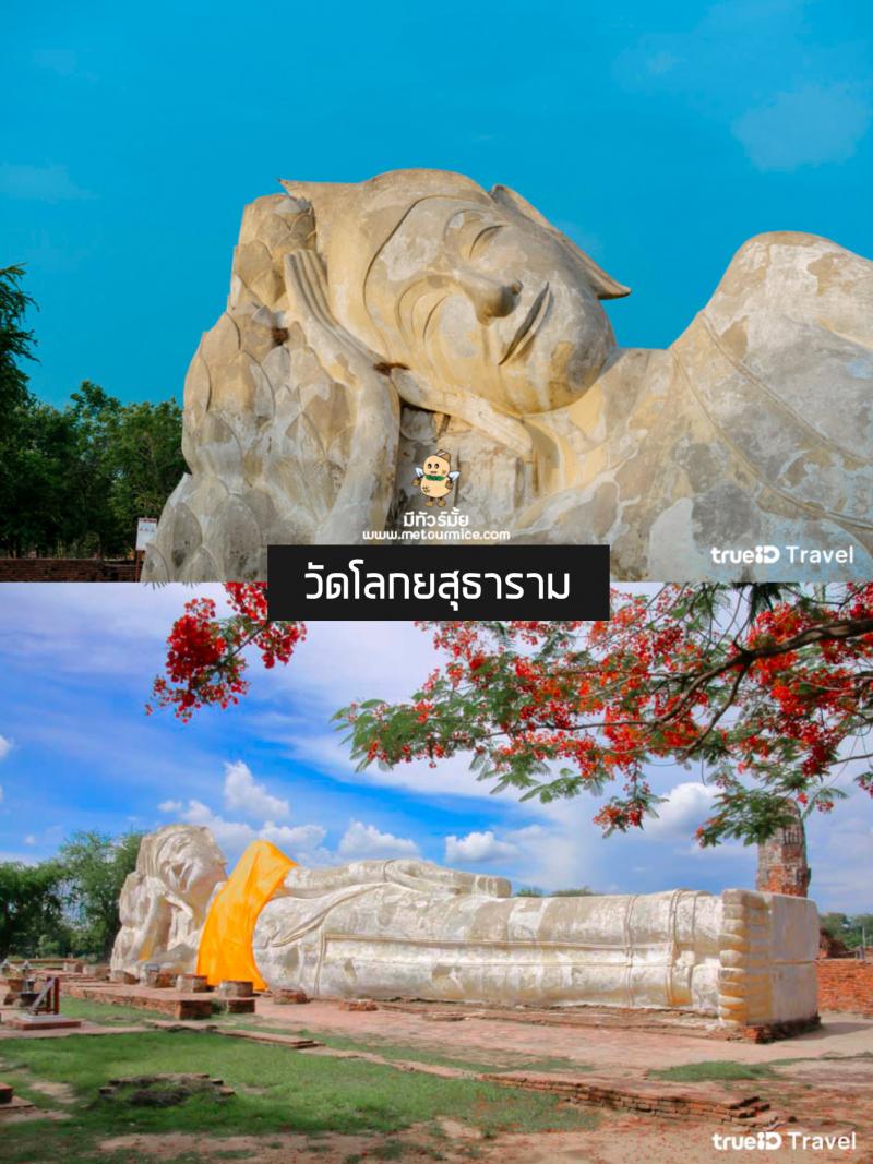 วัดโลกยสุธาราม สันนิษฐานว่าได้สร้างขึ้นในสมัยกรุงศรีอยุธยาตอนกลางในสมัยสมเด็จพระนครินทราธิราช (พระราชบิดาเจ้าสามพระยา) เมื่อปี พ.ศ.1995 จุดเด่นของวัดก็คือ พระพุทธไสยาสน์ ที่ใหญ่ที่สุดในเกาะเมืองอยุธยา ประดิษฐานอยู่กลางแจ้ง จึงมักมีนักท่องเที่ยวมาสักการะพระพุทธไสยาสน์อยู่เสมอๆ