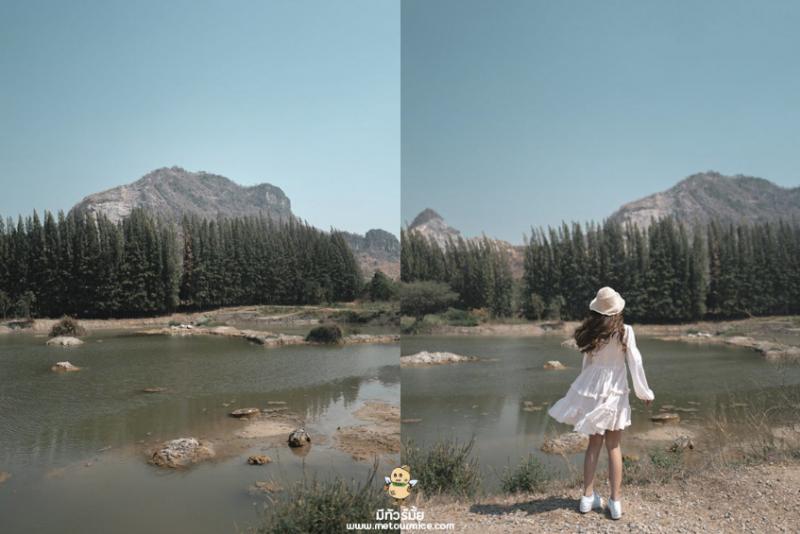 ที่นี่มีวิวที่สวยงามมากๆ ค่ะ เพราะมีทิวสนที่ขึ้นเรียงรายอยู่ริมอ่างเก็บน้ำเล็กๆ และมีภูเขาหินปูนเป็นฉากหลัง บอกเลยว่าตอนไปยืนถ่ายรูป สวยเหมือนอยู่สวิตเซอร์แลนด์เลยน้า สำหรับเวลาที่ควรมาเที่ยวควรอยู่ในช่วงตอนเช้าสัก 8-9 โมงค่ะ หรือ หลัง 4 โมงเย็นไปเลย เพราะจะได้ไม่ร้อน และสวยงาม หากมาตอนแดดจ้ามากๆ อาจจะทำให้ได้ภาพถ่ายที่ไม่สวย