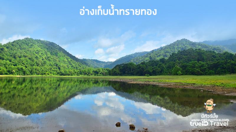 อ่างเก็บน้ำทรายทอง ตั้งอยู่ที่ ตำบลเขาพระ อำเภอเมือง จังหวัดนครนายก เป็นแหล่งน้ำสำหรับการอุปโภค และบริโภคของผู้คนท้องถิ่น บรรยากาศโดยรอบเต็มไปด้วยทิวเขาเขียวขจี ดูร่มรื่นสบายตา และมีบรรยากาศอันเงียบสงบ เหมาะแก่การไปกางเต็นท์ พักผ่อนชมธรรมชาติ หนีจากความวุ่นวายในเมืองกรุง แถมยังมีมุมถ่ายรูปสวยๆ มากมาย