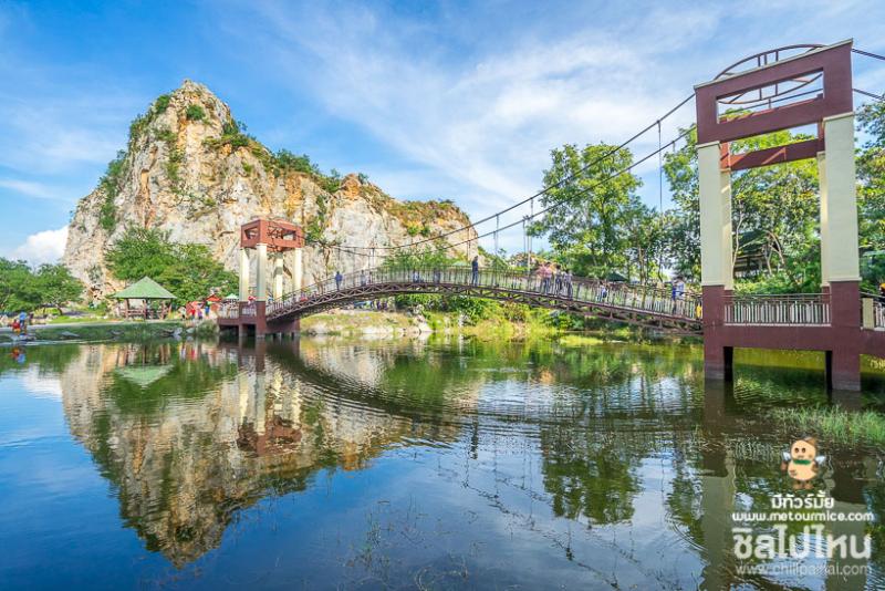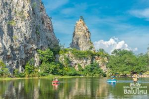 ภายในอุทยานหินเขางู มีพระพุทธรูปหินขนาดใหญ่บนหน้าผาหิน มองเห็นความงดงามตั้งแต่ไกลๆ เลยค่ะ รวมไปถึงใครที่เป็นสายกิจกรรม ที่นี่เค้าก็มีให้ปั่นจักรยานเป็ดน้ำด้วยน้า รับรองว่าบรรยากาศดีต่อใจ ชิลสุดๆ โดยเฉพาะใครมาเที่ยวกับคู่รัก บอกเลยว่าสวีทหวานมากเลย