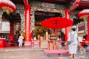 นอกจากที่นี่จะเป็นโรงพยาบาลแล้ว ที่ด้านหน้าของโรงพยาบาลยังมี ศาลเจ้าแม่กวนอิม เป็นสถาปัตยกรรมผสมผสานจีนแต้จิ๋ว ซึ่งเป็นศูนย์รวมจิตใจของชาวบ้านในย่านเยาวราช ภายในศาลเจ้าประดิษฐาน เจ้าแม่กวนอิม พระโพธิสัตว์อวโลกิเตศวร ปางประทานพร เป็นองค์ประธานในศาลเจ้า ซึ่งอันเชิญมาจากประเทศจีนตั้งแต่ปี พ.ศ.2501 ค่ะ และเปิดให้ประชาชนทั่วไปได้เข้าไปสักการะบูชา