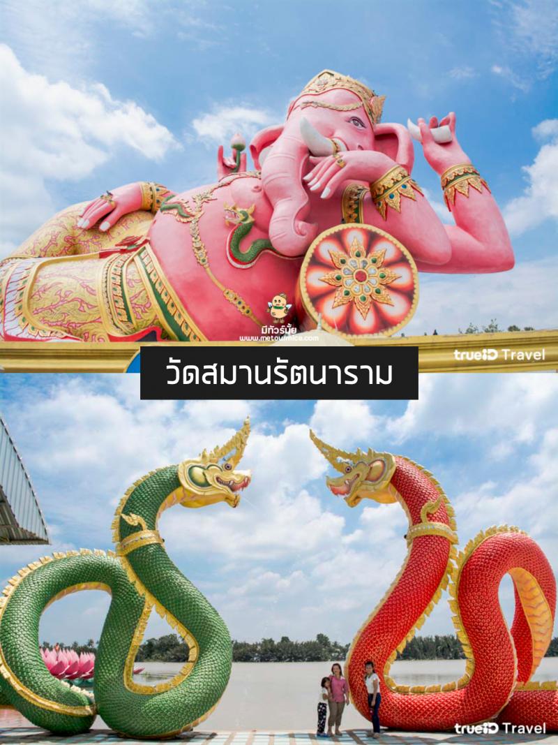พาสายบุญมาขอพรพระพิฆเนศ องค์ใหญ่ ที่ วัดสมานรัตนาราม วัดสวย ฉะเชิงเทรา ริมแม่น้ำบางปะกง ค่ะ ที่นี่ประดิษฐาน พระพิฆเนศปางนอนเสวยสุข องค์ใหญ่ที่สุดในประเทศไทย มีเนื้อองค์เป็นสีชมพู ซึ่งมีขนาดความสูงถึง 16 เมตร และความกว้าง 14 เมตรเลยทีเดียว ซึ่งมีผู้คน และนักท่องเที่ยวมาสักการะ ขอพรมากมาย