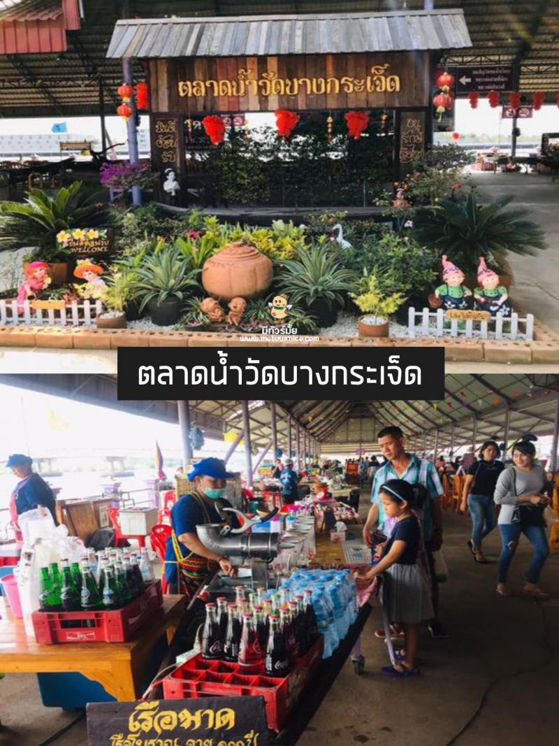 พูดถึงตลาดร้อยปีกันไปแล้ว มาพูดถึงตลาดน้ำกันบ้าง ที่ ตลาดน้ำวัดบางกระเจ็ด ฉะเชิงเทรา ค่ะ ที่นี่เป็นตลาดที่ตั้งอยู่ริมฝั่งแม่น้ำบางปะกง ทำให้มีอากาศเย็นสบายค่ะ ภายในตลาดน้ำมีร้านค้า ร้านอาหาร สินค้าที่หลากหลาย โดยเฉพาะของดีของอำเภอบางคล้า อีกทั้งที่นี่ยังมีโซนห้องสมุดในตลาดน้ำอีกด้วย เพื่อเป็นแหล่งเรียนรู้ให้กับคนในพื้นที่ และนักท่องเที่ยวนั่นเอง