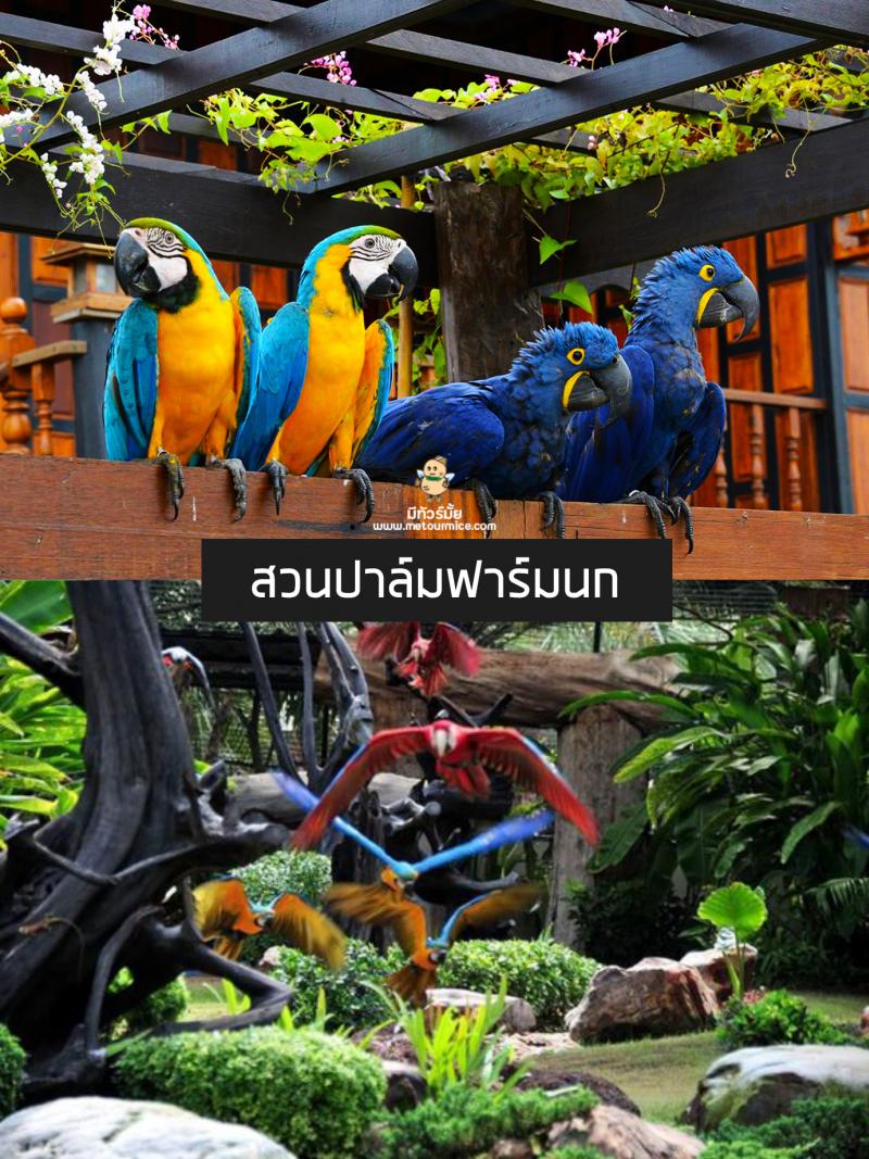 สวนปาล์มฟาร์มนก เป็นแหล่งเรียนรู้ และท่องเที่ยวเกี่ยวกับนกแก้วสวยงาม ที่ใหญ่เป็นอันดับต้นๆ ของโลก และเป็นฟาร์มนกที่ใหญ่ที่สุดในประเทศไทย ที่นี่มีนกแก้วมากกว่า 2,000 ตัวและมากกว่า 80 สายพันธุ์ที่หาดู ได้ยากค่ะ ที่นี่เปิดให้นักท่องเที่ยวสามารถเข้าชม สัมผัสใกล้ชิดกับนก และให้อาหารนกได้ รวมถึงรอบบริเวณยังร่มรื่น เต็มไปด้วยต้นไม้ มีมุมสวยๆ ถ่ายรูปอีกด้วย