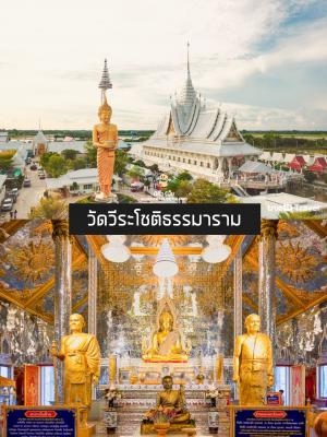 วัดวีรโชติธรรมาราม เดิมมีชื่อว่า สำนักสงฆ์ทองธรรมโชติ ที่นี่เป็นอีกหนึ่ง วัดสวย ใกล้กรุงเทพฯ ค่ะ โดดเด่นด้วย อุโบสถแก้วกลางน้ำ ซึ่งภายในประดับกระจกแก้ว และลวดลายทรงไทย ที่งดงาม ด้านบนบรรจุพระบรมสารีริกธาตุ และพระเกศาหลวงพ่อฤาษีลิงดำ ซึ่งเป็นที่เคารพบูชาของชาวไทย