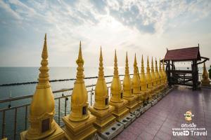 ส่วนชั้นบนสุดที่เป็นทั้ง จุดชมวิว สามารถมองเห็นทะเลนั้น พอเวลาน้ำขึ้นจะดูเหมือนอาคารนี้ลอยอยู่กลางน้ำเลย และยังมี พระธาตุคงคามหาเจดีย์ เจดีย์สีเหลืองทองที่บรรจุพระธาตุพระอรหันต์อยู่ภายในนั่นเองค่ะ นอกจากนั้นก็มี พระอุโบสถของ วัดหงษ์ทอง ที่ตั้งอยู่กลางทะเลเช่นเดียวกันค่ะ