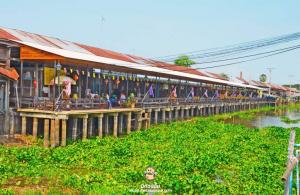 ใครที่ชอบบรรยากาศเงียบสงบริมน้ำ แนะนำให้ไปที่สะพานไม้ข้ามคลองค่ะ เพราะเป็นจุดที่ถ่ายรูปสวยมาก เราจะได้เก็บภาพสวยๆ ของอาคารไม้ที่มุงด้วยหลังคาสังกะสีเรียงรายไปตลอดตามแนวคลอง ให้สีสันที่แปลกตา แต่ก็เป็นภาพสุดวินเทจที่หาไม่ได้ง่ายๆ ในเมืองกรุงด้วยเช่นกัน