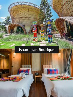 มาสัมผัสบรรยากาศน่ารักสไตล์อีสานบ้านเรากันที่ Isaan-Isan Boutique Resort by Andacura Premium กันค่ะ แน่นอนว่าทุกอณูในที่พักนั้นเต็มไปด้วยกลิ่นอายของภาคอีสานที่เราคุ้นเคย ทั้งจากไม้ไผ่ต่างๆ ที่เป็นวัสดุในตกแต่งที่พัก ผ้าขาวม้า หมอนอิงสามเหลี่ยม และอื่นๆ ที่เรามักจะพบเจอในการไปเที่ยวอีสาน ก็ได้มาเป็นของตกแต่งกระจายไปทั่วทั้งรีสอร์ท ทำให้เป็นกิมมิกได้มุมสวยๆ ถ่ายรูปปังกันไปอีกค่ะ