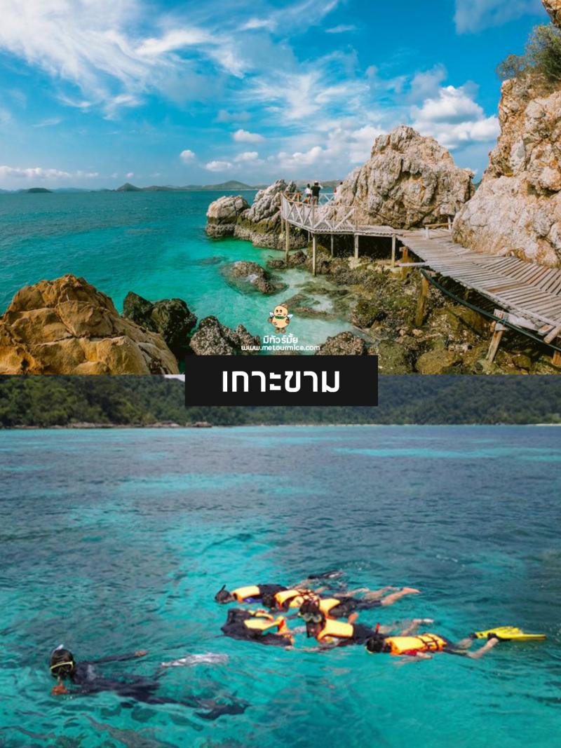 การเดินทางไป เกาะขาม นั้นไม่ยากเลยค่ะ เพียงจองตั๋วเรือล่วงหน้ากับเจ้าหน้าที่ฐานทัพเรือสัตหีบ และนั่งรถโดยสารสองแถว ไปยัง ท่าเรือเขาหมาจอ เราก็จะได้นั่งเรือไปเที่ยว เกาะขาม กันแล้วค่ะ รอบๆ เกาะมีกิจกรรมให้ทำเยอะมาก ไม่ว่าจะเป็น พายเรือคายัค ดำน้ำตื้น หรือจะเดินเล่นถ่ายรูปบนหาดก็ได้ค่ะ ใครอยากทำกิจกรรมสนุกๆ ก็สามารถเช่าอุปกรณ์พายเรือคายัค หรือ อุปกรณ์ดำน้ำ 50 บาท ที่จุดบริการนักท่องเที่ยวบนเกาะได้เลยค่ะ