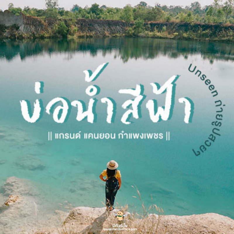 กำแพงเพชร เป็นจังหวัดหนึ่งที่มี ที่เที่ยวทางประวัติศาสตร์ และ ที่เที่ยวธรรมชาติ เยอะมากค่ะ และวันนี้เราอยากจะพาทุกคนมาเที่ยวอีกที่ ที่เรียกได้ว่า Unseen กำแพงเพชร เลยทีเดียว นั่นก็คือ บ่อน้ำสีฟ้า หรือที่เรียกกันว่า แกรนด์ แคนยอน กำแพงเพชร ค่ะ สระน้ำที่นี่มีสีฟ้าคราม และใสราวกับน้ำทะเลยังไงยังงั้น สวยมากๆ ไปถ่ายรูปเล่นเพลินๆ กันได้เลยค่ะ