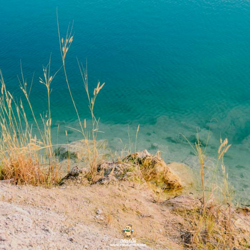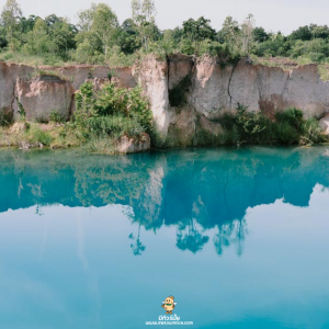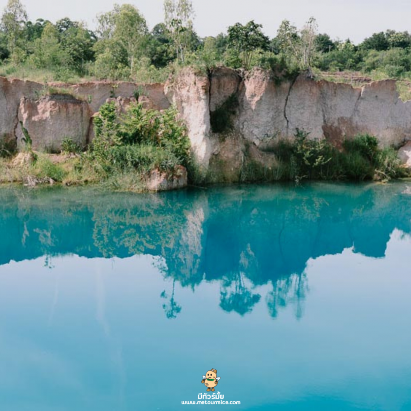 คาดว่าสีฟ้าในสระน้ำนี้เกิดจากฝนที่ตกลงมาชะล้างแร่ธาตุหลายชนิดในดิน ทำให้น้ำเกิดเปลี่ยนสีไปตามชนิดแร่จนเกิดสีสันที่สวยงามขึ้น แต่ที่นี่ห้ามลงเล่นน้ำเด็ดขาดเลยนะคะ! เพราะน้ำค่อนข้างลึกอาจทำให้เกิดอันตรายได้ค่ะ มาถ่ายรูปสวยๆ ก็พอเนอะ