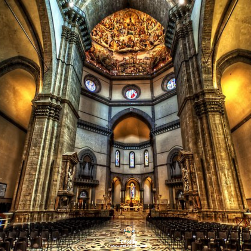 Florence Cathedral ได้ถูกสร้างขึ้นในช่วงปลายศตวรรษที่ 13 ด้วยการออกแบบของสถาปนิกฟิลิปโป บรูเนลเลสกี เป็นวิหารที่ตั้งอยู่กลางจัตุรัส Piazza del Duomo อันเป็นศูนย์กลางของเมืองฟลอเรนซ์เมืองที่ขึ้นชื่อในด้านของศิลปะและสถาปัตยกรรมยุคกลาง หรือที่เรียกกันว่ายุคสมัยฟื้นฟูศิลปวิทยา จุดเด่นของมหาวิหารแห่งนี้คือโดมสีส้มขนาดใหญ่และโครงสร้างภายนอกอาคารที่เป็นหินอ่อนสีขาว แต่งด้วยหินสีเขียวและชมพูที่ได้รับการตกแต่งด้วยหินแกะสลัก เป็นผลงานทางสถาปัตยกรรมที่สร้างในแบบนีโอโกธิคที่มีภาพโมเสกตกแต่งเหนือซุ้มประตูและมีหอระฆังสูง 85 เมตรอยู่บริเวณด้านข้าง ส่วนภายในมหาวิหารนั้นประกอบไปด้วยหน้าต่างที่เป็นกระจกหลากหลายสีที่ได้รับการออกแบบโดยศิลปินที่มีชื่อเสียงในยุคเรอเนสซองอย่าง ลอเรนโซ กีแบร์ติ และโดนาเทลโล มีภาพเขียนบนผนังทีเรียกว่า Fresco ของเปาโล อุซเซลโล อันเป็นจุดเด่นของศิลปะบนฝาผนังของมหาวิหารแห่งนี้ นอกจากนั้นยังมีส่วนของห้องใต้ดินที่เรียกว่า The Crypt เป็นอีกหนึ่งส่วนสำคัญของมหาวิหารอีกด้วย