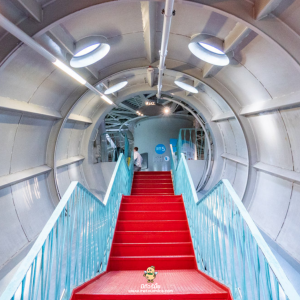 โดยโครงสร้างแรกเริ่มของอาคารประกอบด้วยวัตถุทรงกลมทำจากอลูมิเนียมจำนวน 9 ลูก แต่ละลูกจะมีเส้นผ่าศูนย์กลาง 18 เมตร และเชื่อมต่อกันด้วยหลอดทรงกระบอกทำจากเหล็กมีเส้นผ่าศูนย์กลาง 3 เมตร ที่ติดตั้งลิฟต์กับบันไดเลื่อนเพื่อใช้สัญจรไปยังจุดต่างๆ ของอาคาร โดยความยาวสูงสุดของบันไดเลื่อนในหลอดทรงกระบอกคือ 35 เมตร หลอดกลางสุดของอาคารจะมีการติดตั้งลิฟต์ที่มีความเร็วถึง 5เมตร ต่อ วินาที บรรจุคนได้ 22 คนในหนึ่งรอบการใช้งาน น้ำหนักรวมทั้งหมดของอาคารอยู่ที่ 2,400 ตัน จุดที่สูงที่สุดของอาคารคือ 102 เมตร พื้นที่จัดงานหลักจะอยู่ในลูกกลมด้านบนสุด แม้ตอนแรกจะมีลูกกลมถึง 3 ลูกที่ไม่สามารถใช้งานอะไรได้ มีหน้าที่เพียงช่วยลดแรงลม และรักษาสมดุลของตัวอาคารไม่ให้มีการพลิกคว่ำ แต่ก็ยังถือว่าเป็นผลงานทางสถาปัตยกรรมที่ประสบความสำเร็จที่สุดครั้งหนึ่งของงานเวิลด์เอ็กโป (World Expo) และสร้างชื่อเสียงให้กับประเทศมากมาย